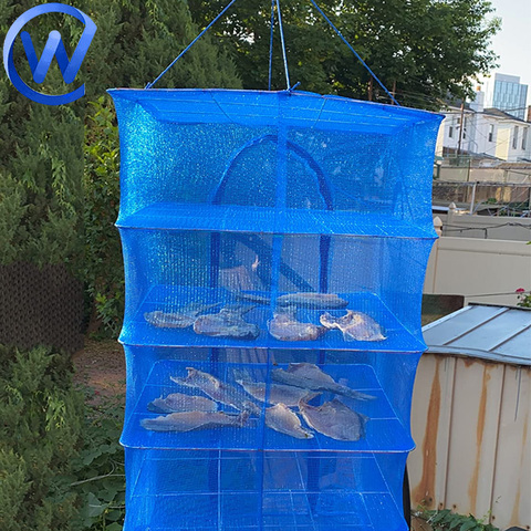 Faltbarer 3-lagiger hängender Fisch Meeres früchte trocknungs netz Kunststoff-Netz käfig